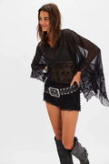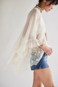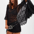 Avelora | Luchtige Blouse met Kant en Wijde Mouwen