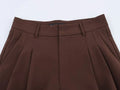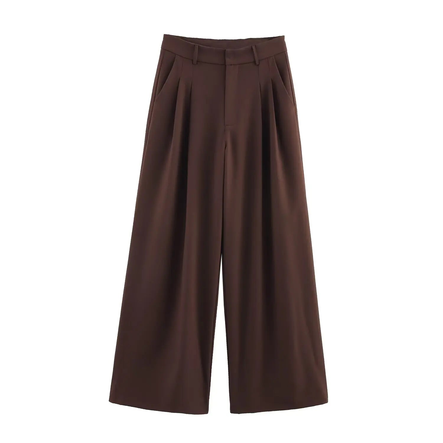 Marisse | Hoge Taille Plooibroek in Donkerbruin met Wijde Pijp